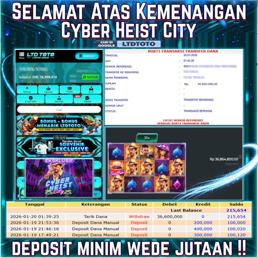 LTDTOTO JACKPOT CYBER HEIST CITY RP 36.600.000 SELASA 20 JANUARI 2026