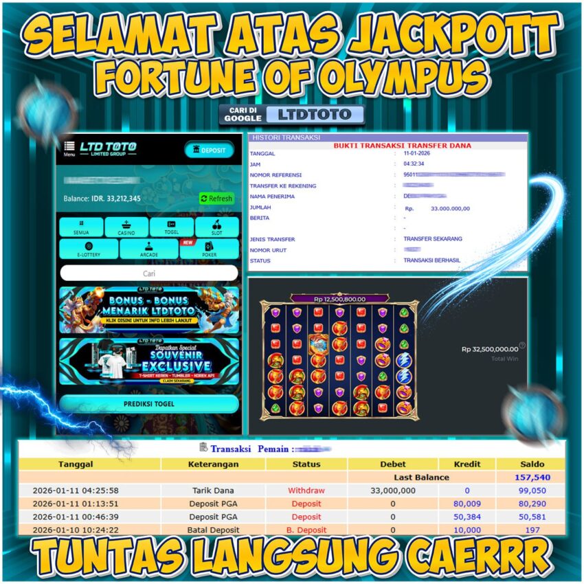 LTDTOTO JACKPOT FORTUNE OF OLYMPUS RP 33.000.000 MINGGU 11 JANUARI 2026