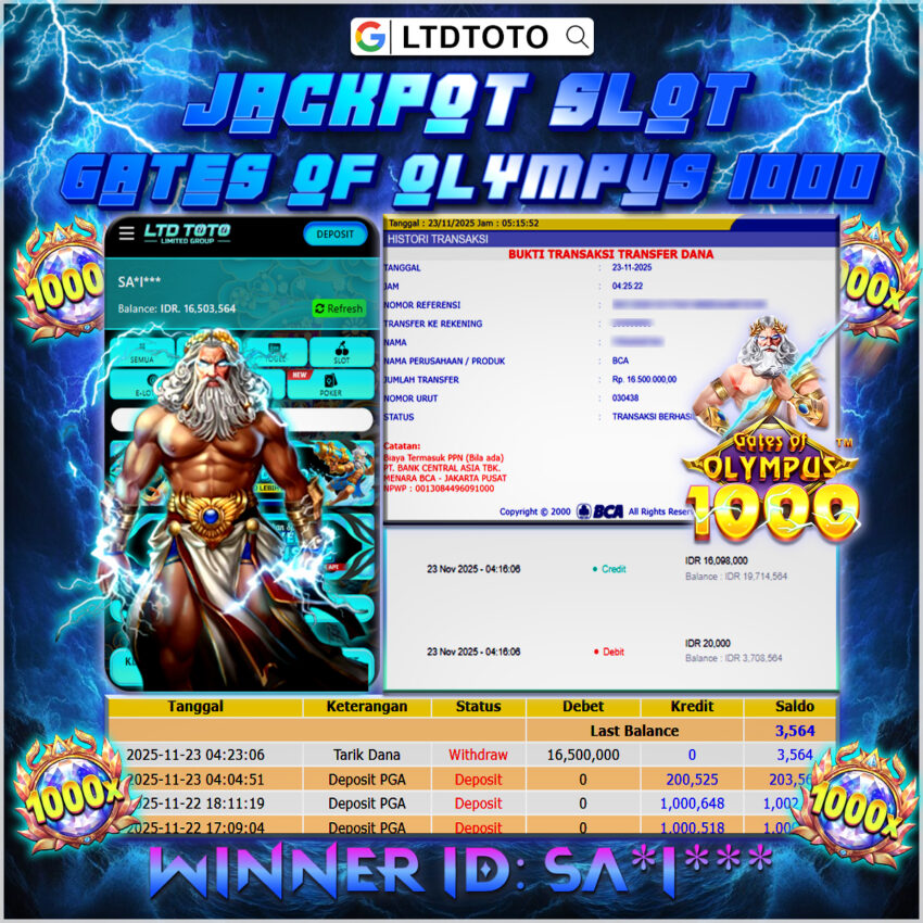 LTDTOTO JACKPOT GATES OF OLYMPUS 1000 RP 16.500.000 MINGGU 23 NOVEMBER 2025