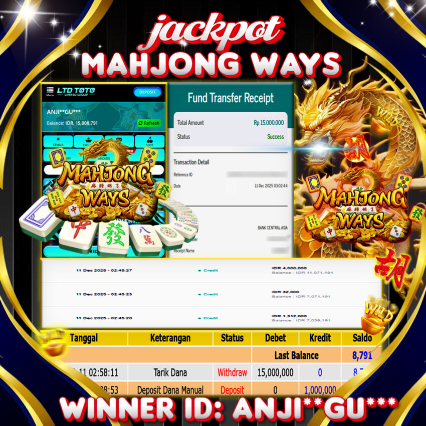 LTDTOTO JACKPOT MAHJONG WAYS RP 15.000.000 KAMIS 11 DESEMBER 2025