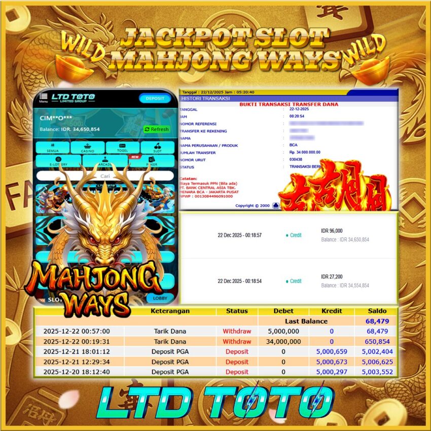 LTDTOTO JACKPOT MAHJONG WAYS RP 34.000.000 SENIN 22 DESEMBER 2025