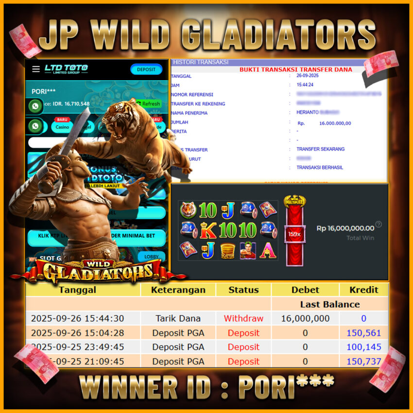 LTDTOTO JACKPOT SLOT WILD GLADIATORS RP 16.000.000 JUMAT 26 SEPTEMBER 2025
