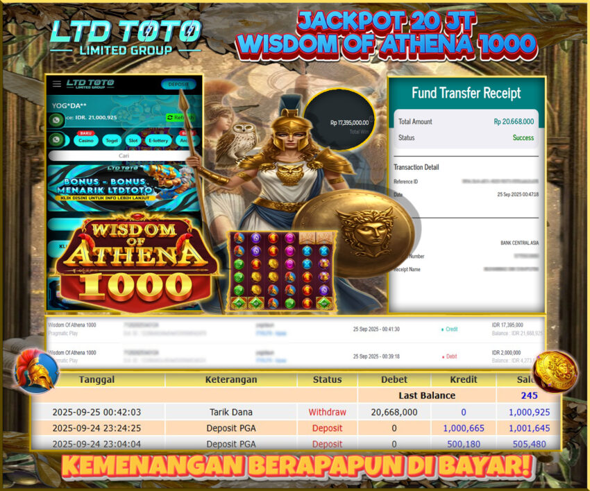 LTDTOTO JACKPOT SLOT WISDOM OF ATHENA 1000 RP 20.000.000 KAMIS 25 SEPTEMBER 2025