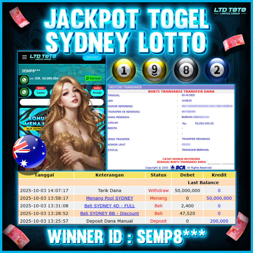 LTDTOTO JACKPOT TOGEL SYDNEY LOTTO RP 50.000.000 JUMAT 03 OKTOBER 2025